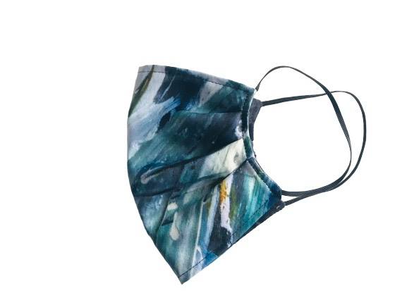 Colors: These mask contain mostly shades of blue, white, green, grey and rust. If this print is unavailable I will do my best to send one in similar shades.